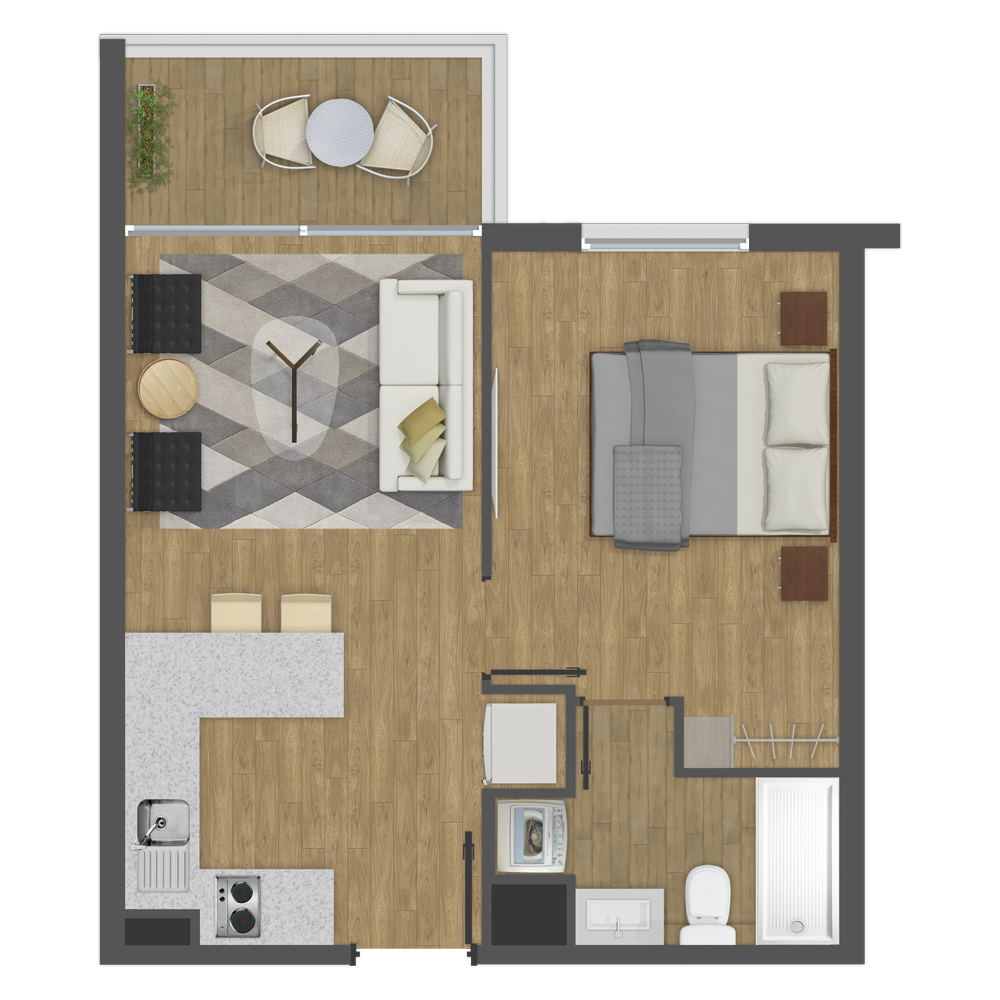 1 Dorm. 1 baño
