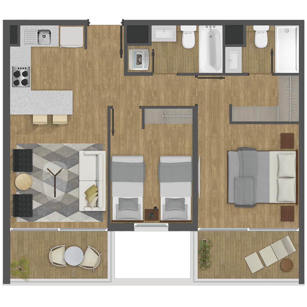 2 Dorm. 2 baños